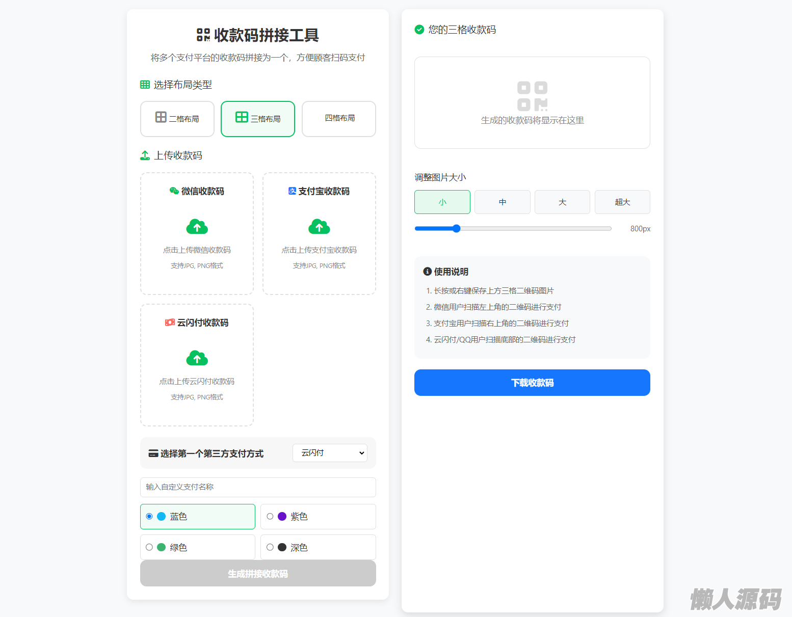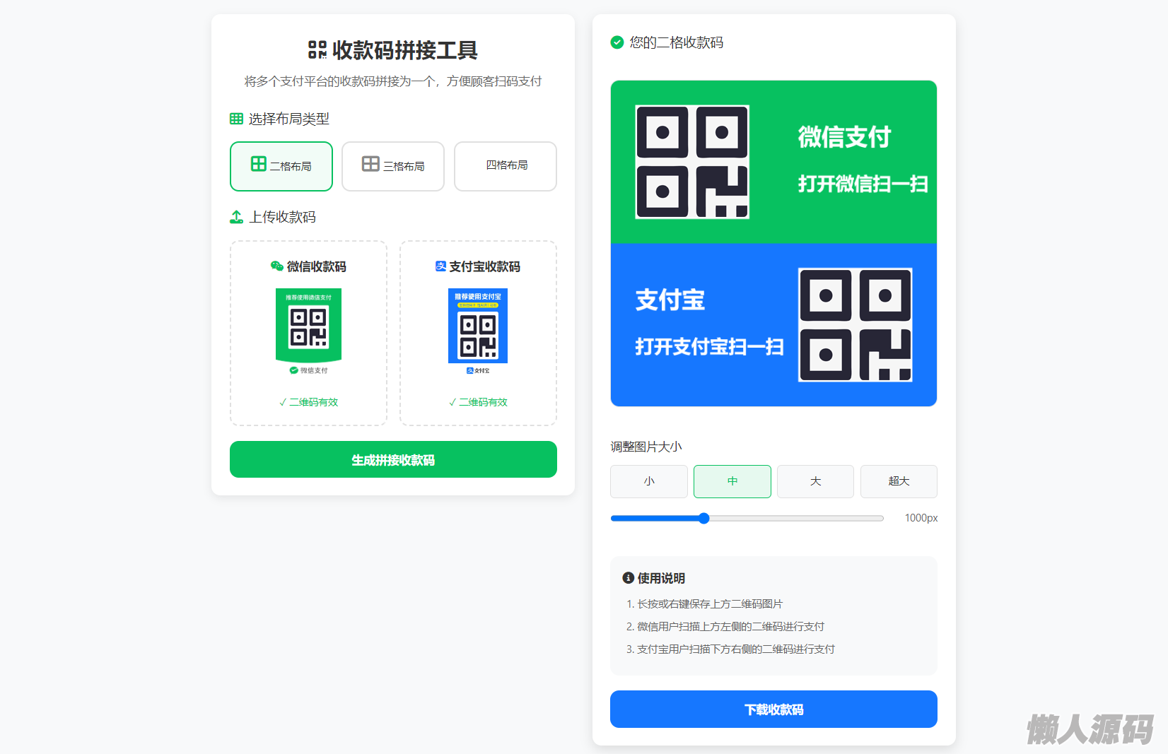 懒人源码 » ZFB与WX收款码拼接工具合三合一源码