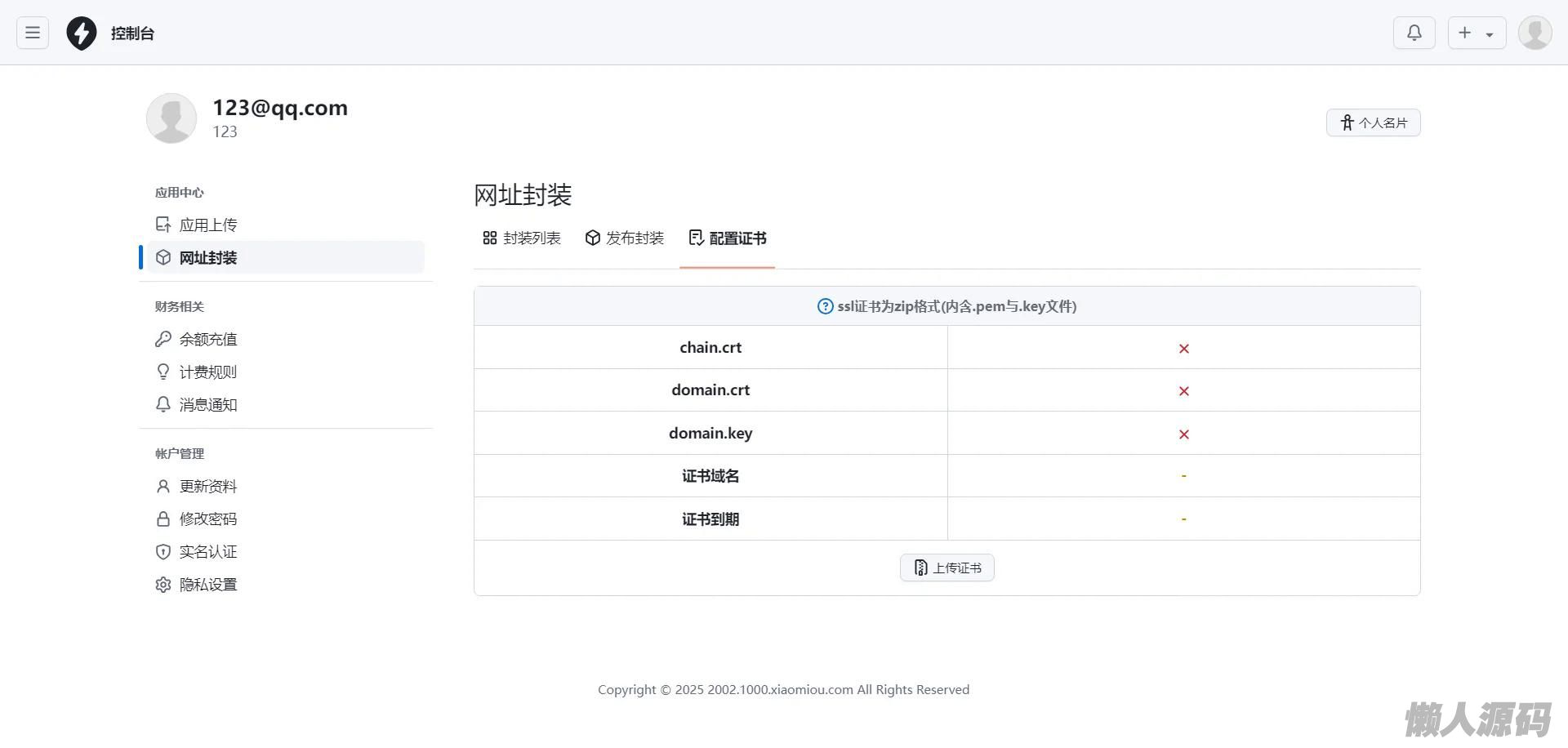 需要上传签名证书,安卓测试了一下不行!自行研究吧!