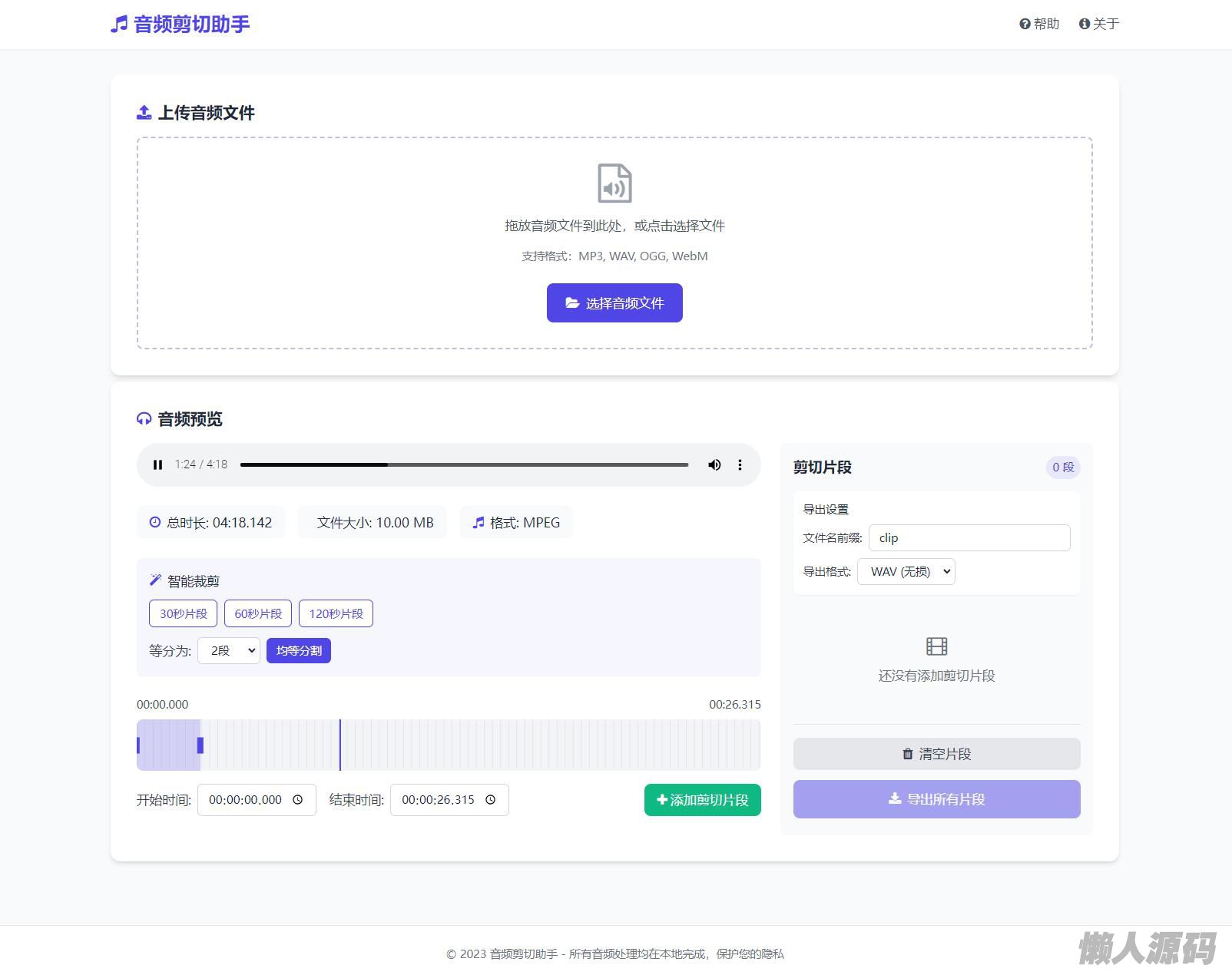 音频在线剪切 助手网页版源码 所有音频处理均在本地完成