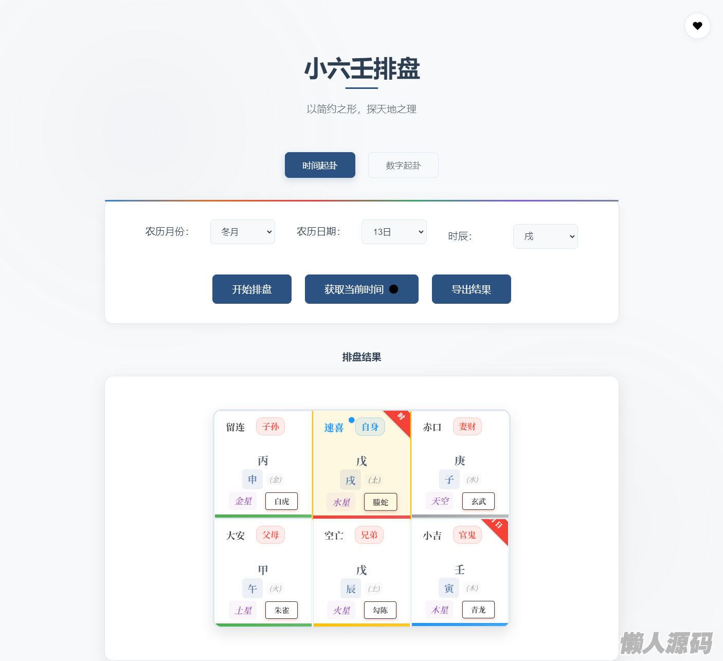 懒人源码 » 小六壬排盘工具源码 自适应双端