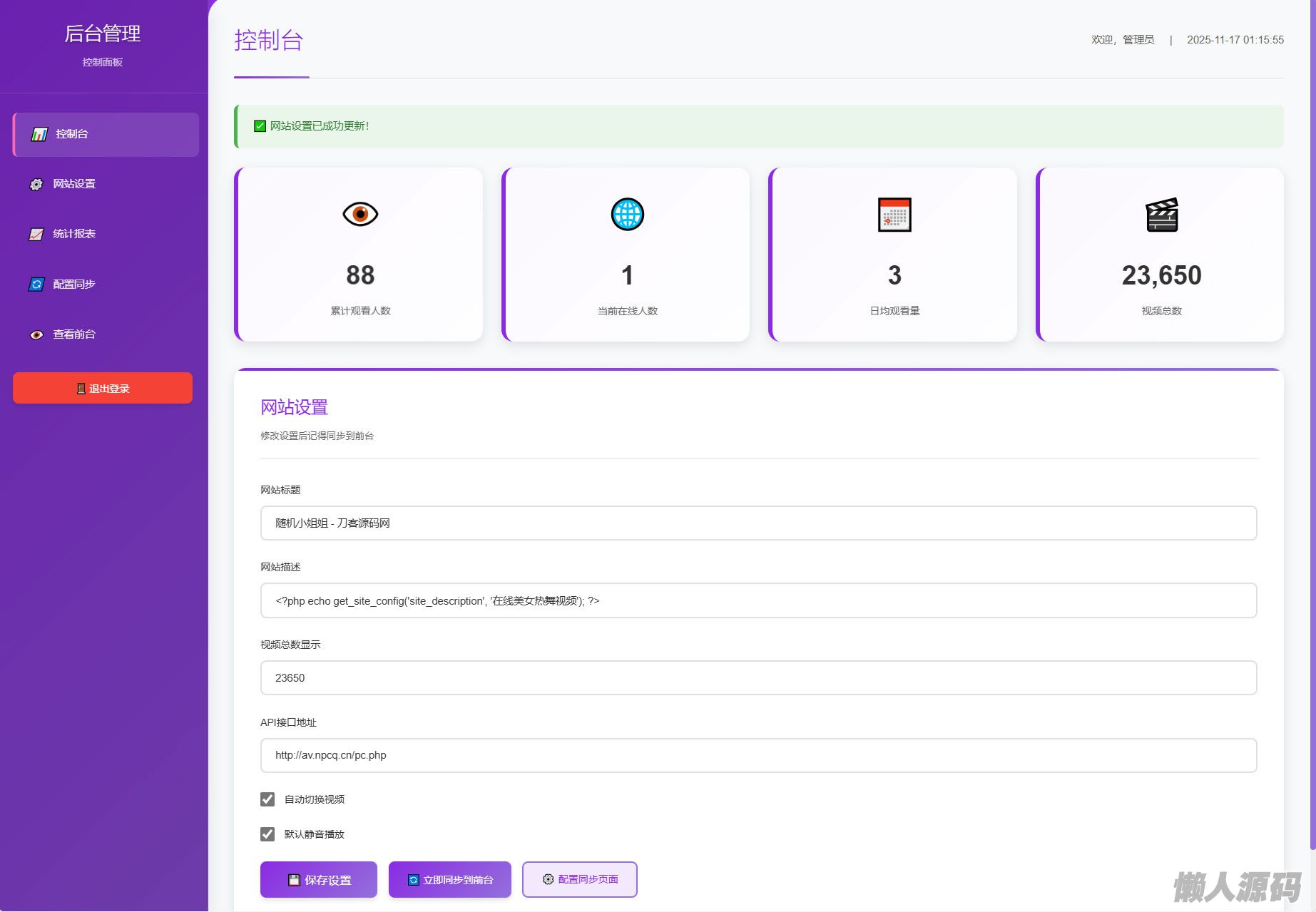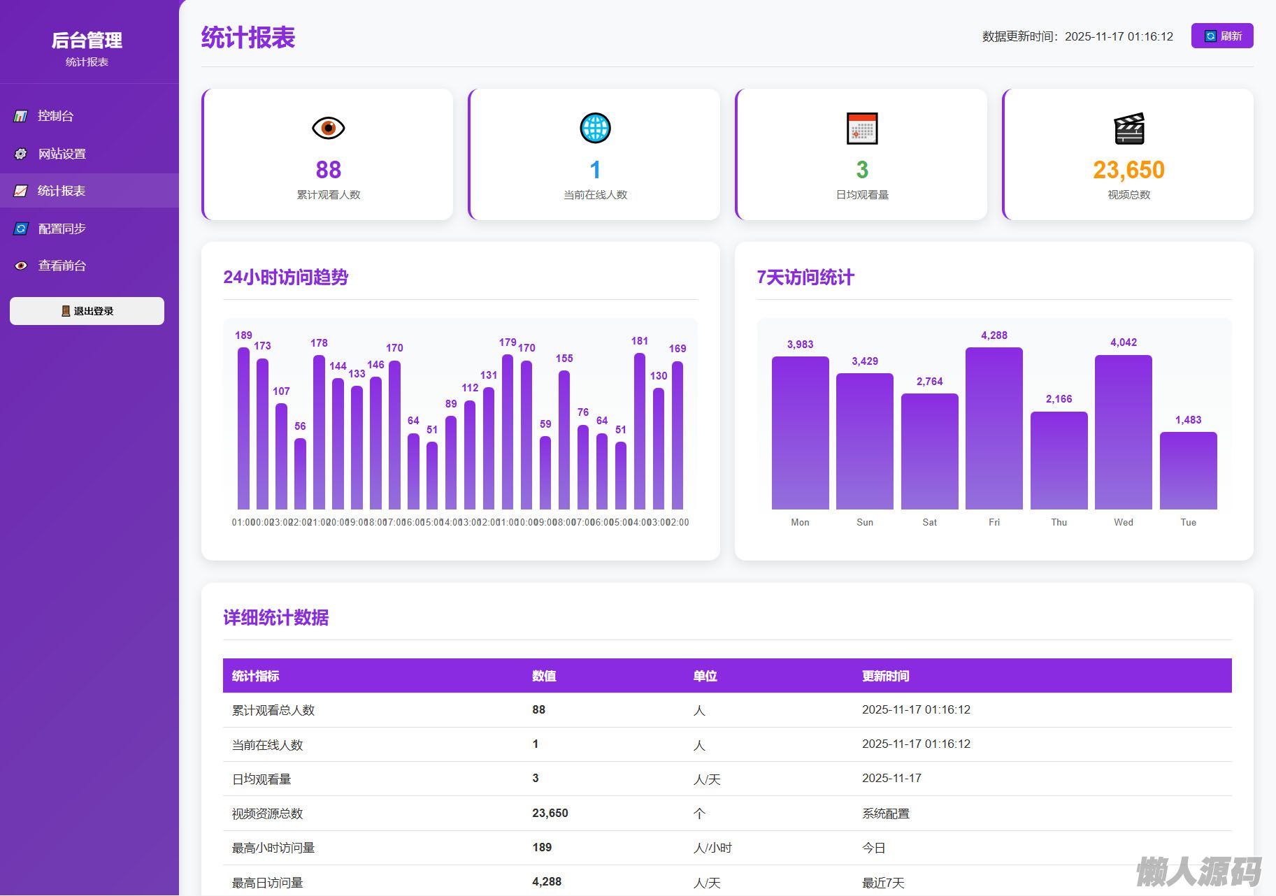 4.0版本更新了后台功能,可以自行修改接口,修改网站信息,后台统计报表等