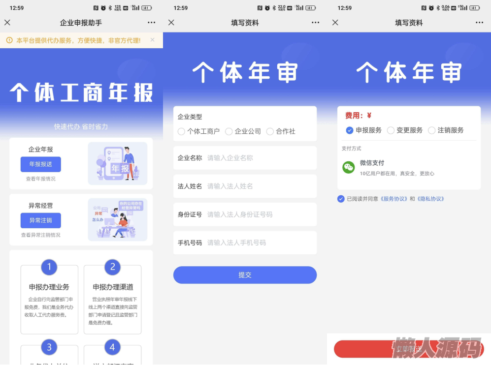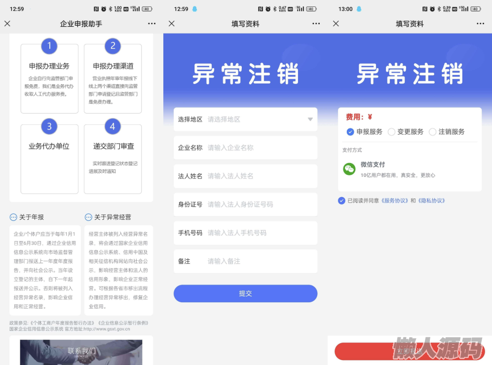 懒人源码 » 工商年报申报系统源码 个体工商户年报注销H5搭建源码