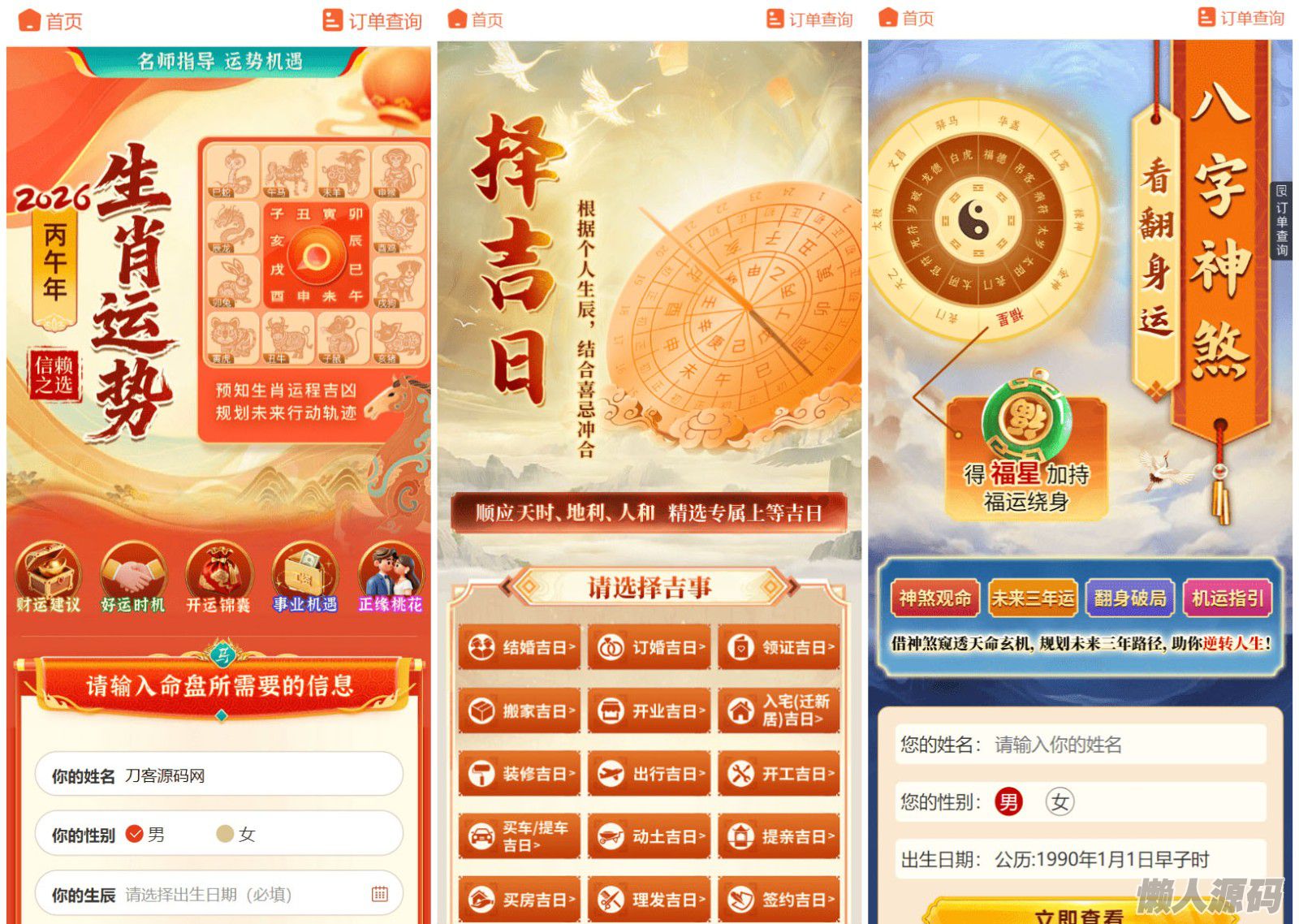 懒人源码 » 2026马年新版测算系统源码 全开源修复版 支持易支付带教程