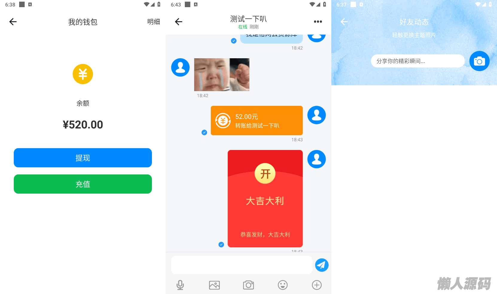 懒人源码 » 风车IM即时通讯聊天社交APP源码+h5群聊+红包转账+朋友圈