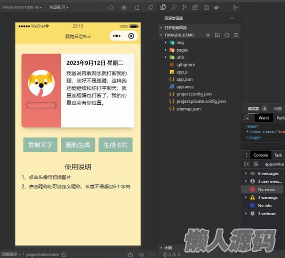 懒人源码 » 舔狗日记Puls微信小程序源码