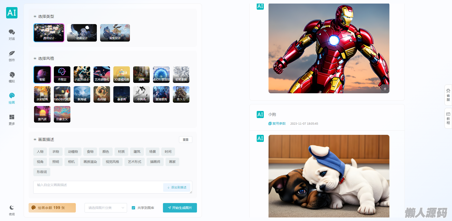 本版本亮点:PC端绘画界面调整,右边部分视觉,同时左侧了画面描述,标签数据包括8千多个可调用
