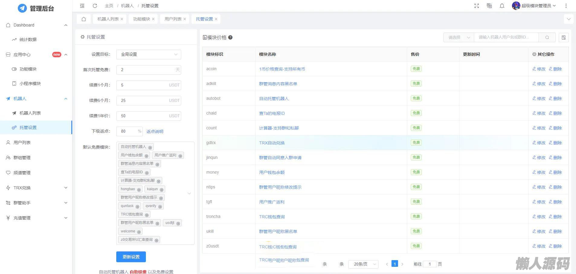 懒人源码 » 全功能tgbot/Telegram机器人多功能有后台版源码