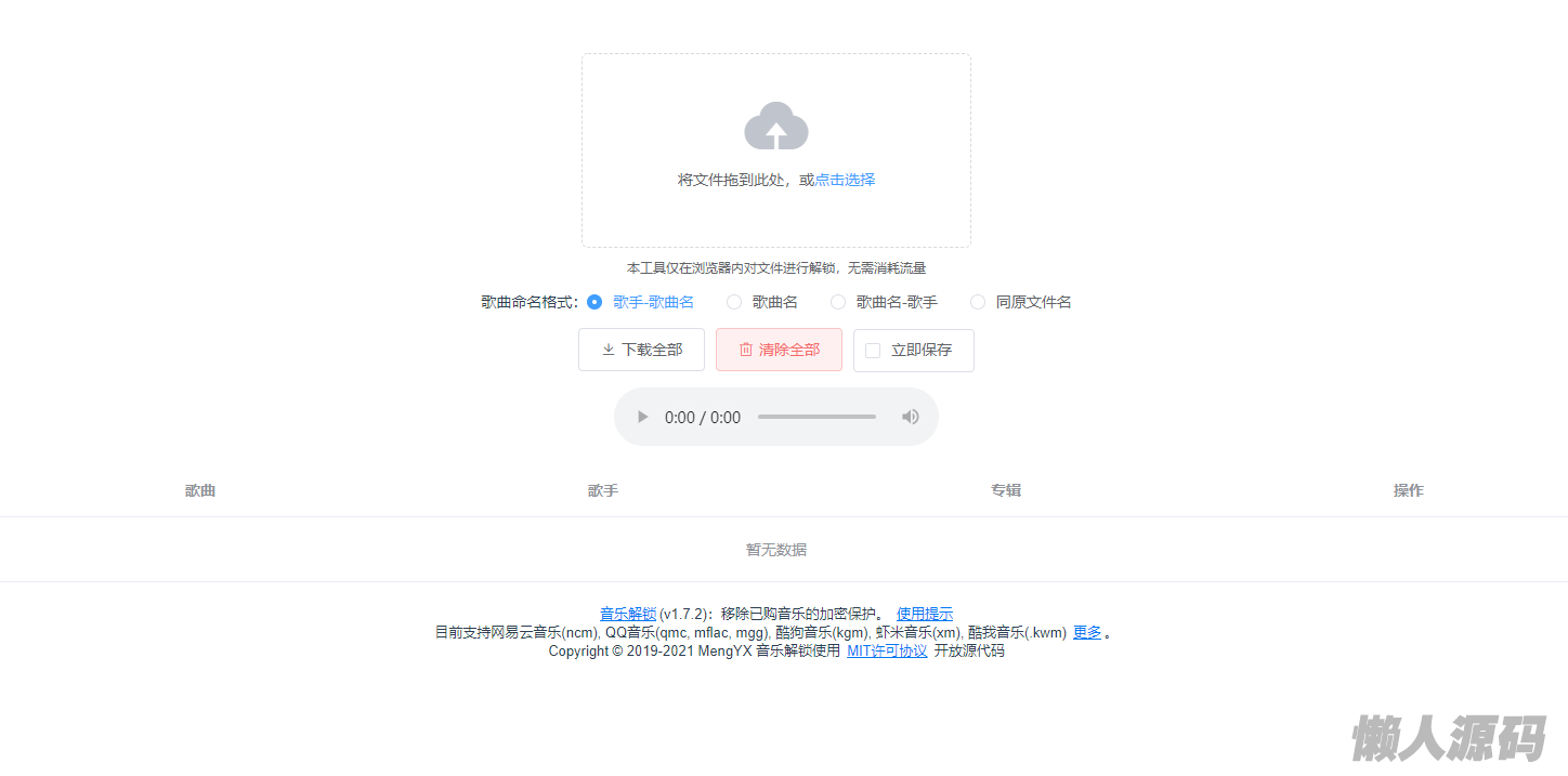 懒人源码 » 在线解密qmc和ncm等音乐加密格式网站源码