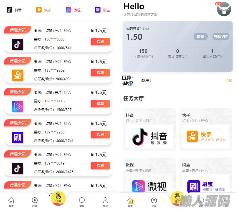 懒人源码 » 仿V10京唯淘系统 支持抖音+快手+刷宝+微视等所有主流短视频点赞/关注/评论系统源码