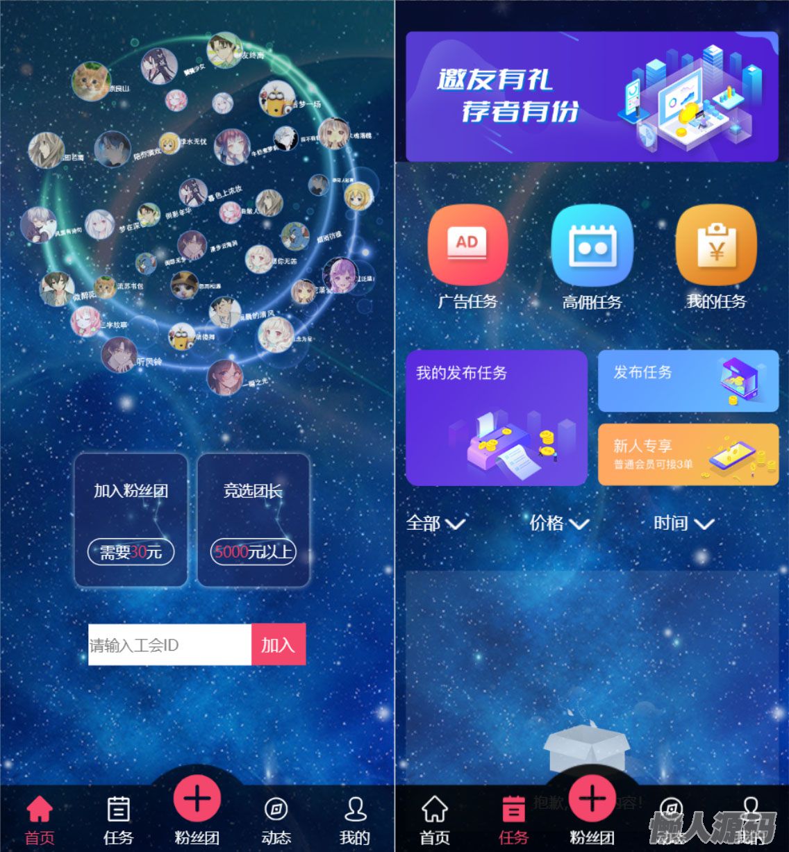 任务悬赏 抢单系统 源码 /支持 功能/粉丝团团长分佣广告阅读收益还带 获取 功能带自动结算 全网