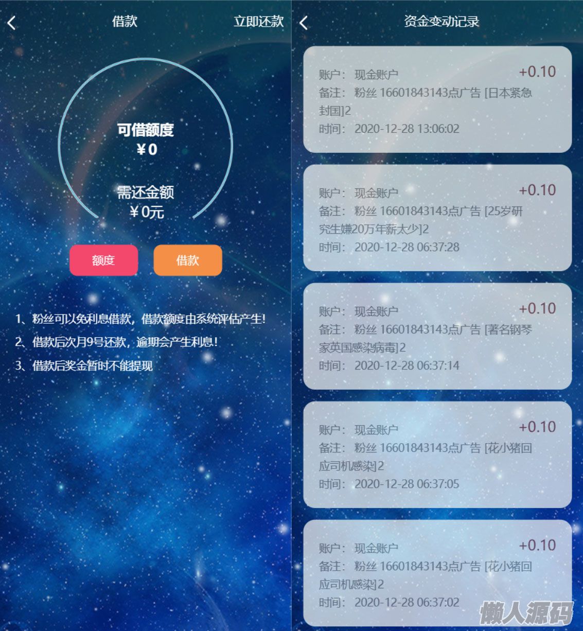 懒人源码 » 2022全新任务悬赏抢单系统源码/支持借款余额宝功能/粉丝团团长分佣 全网首发