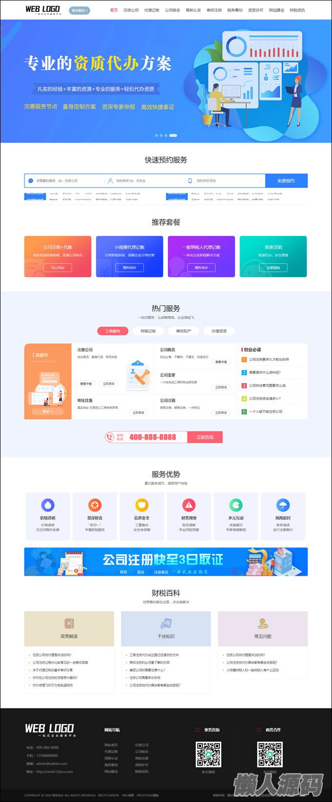 懒人源码 » 企业记账报税公司注册商务服务网站pbootcms模板 财务会计类网站源码