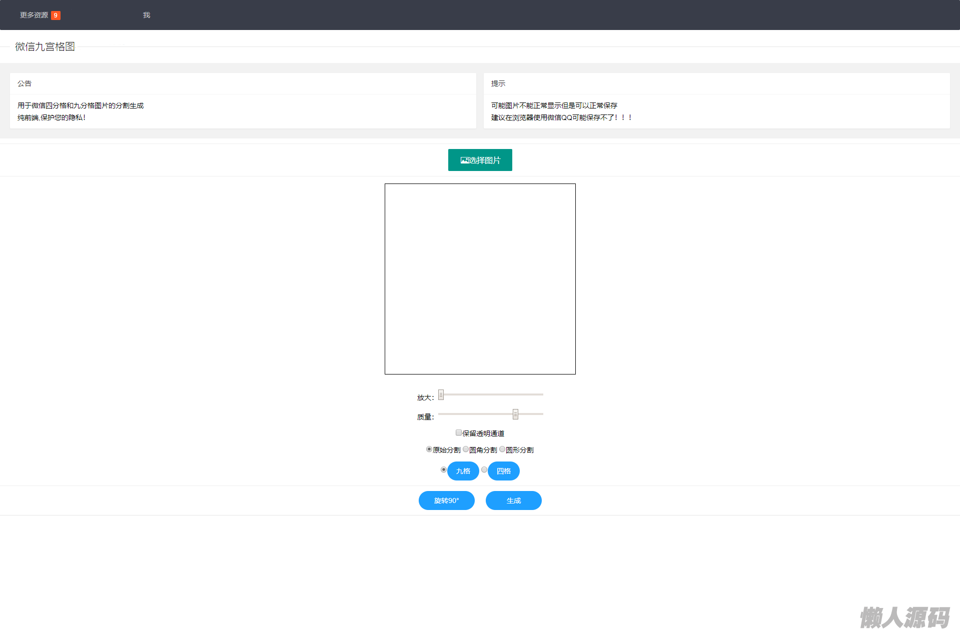 懒人源码 » 微信九宫格四宫格图生成网站源码_二开美化版