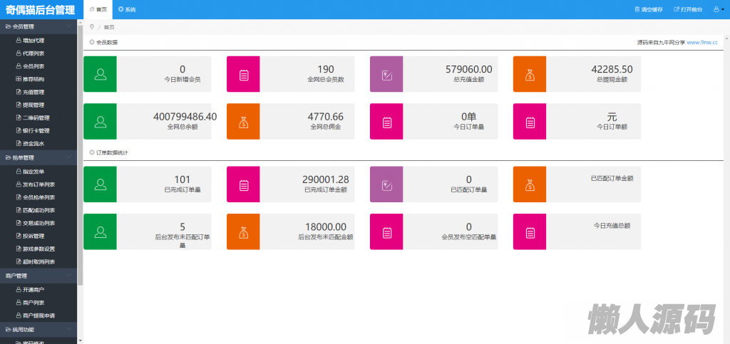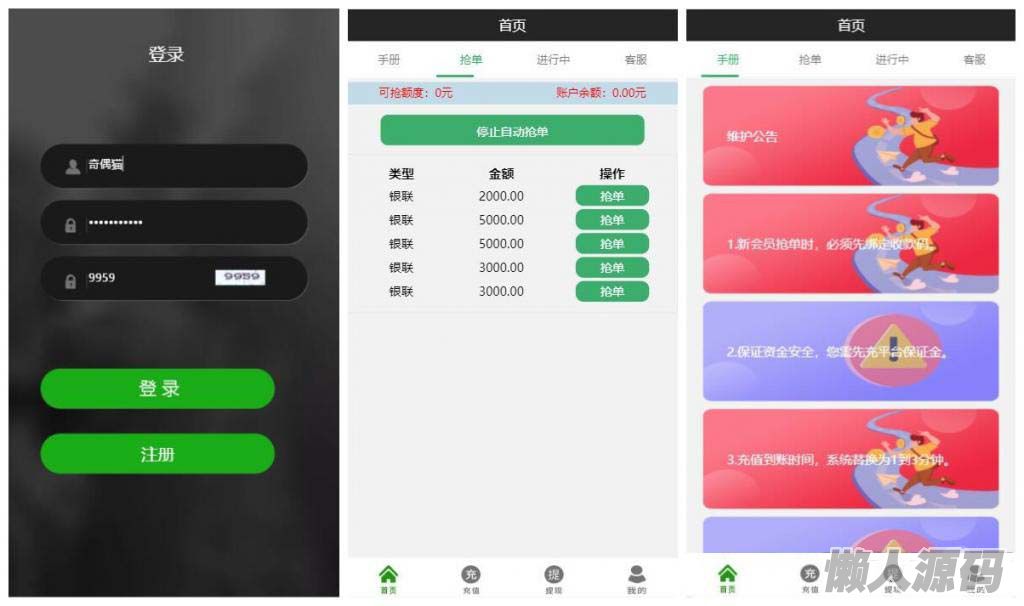 懒人源码 » 全新UI大气的抢单源码跑分系统源码+代理后台+商户后台