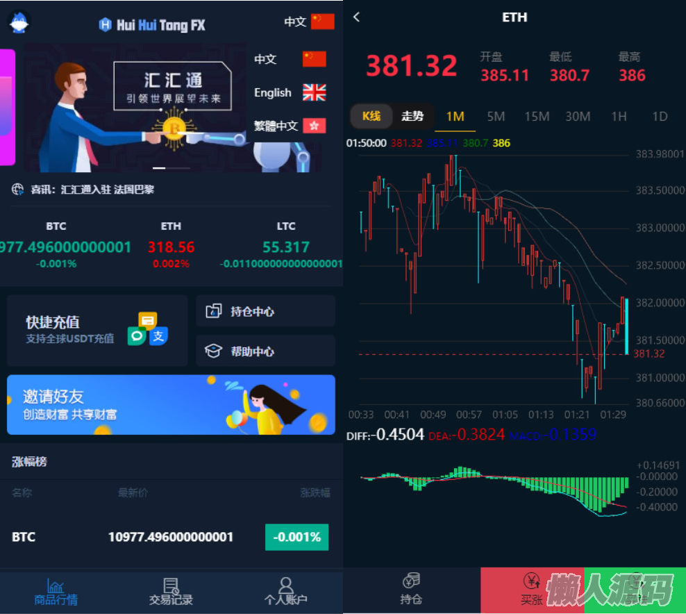 懒人源码 » 汇汇通微盘usdt支付完美运营2次开发版+完整数据+K线正常+3种语言