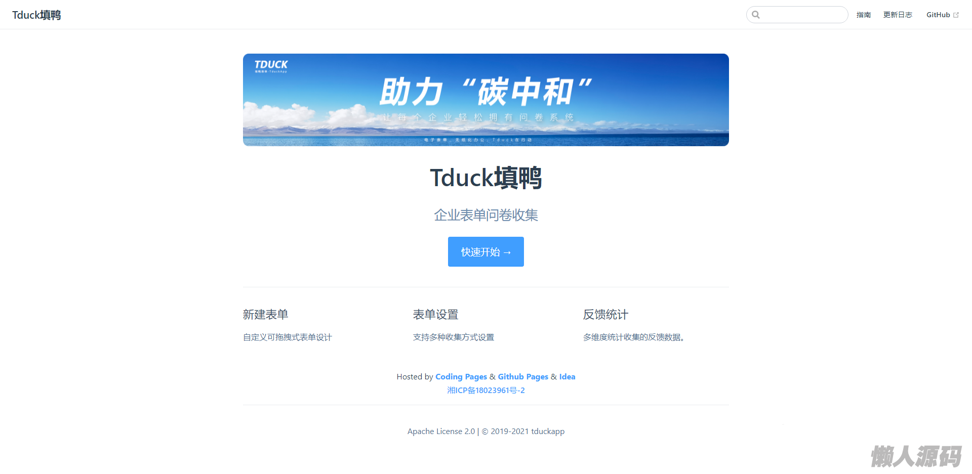 Tduck 填鸭:是基于B/S架构的一款开源的表单在线收集系统,为企业构建自己的信息反馈系统的综合解决方案,助力企业反馈收集效率。