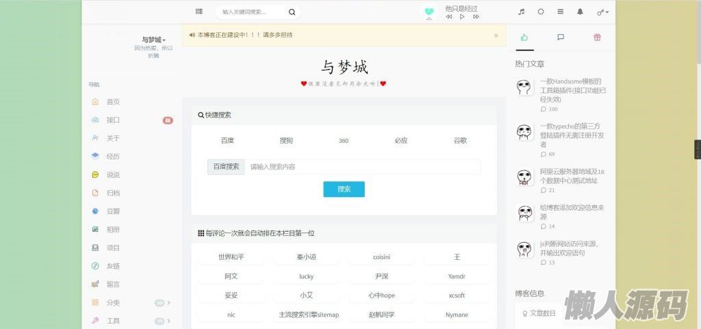 懒人源码 » 与梦城Typecho博客数据站+API站