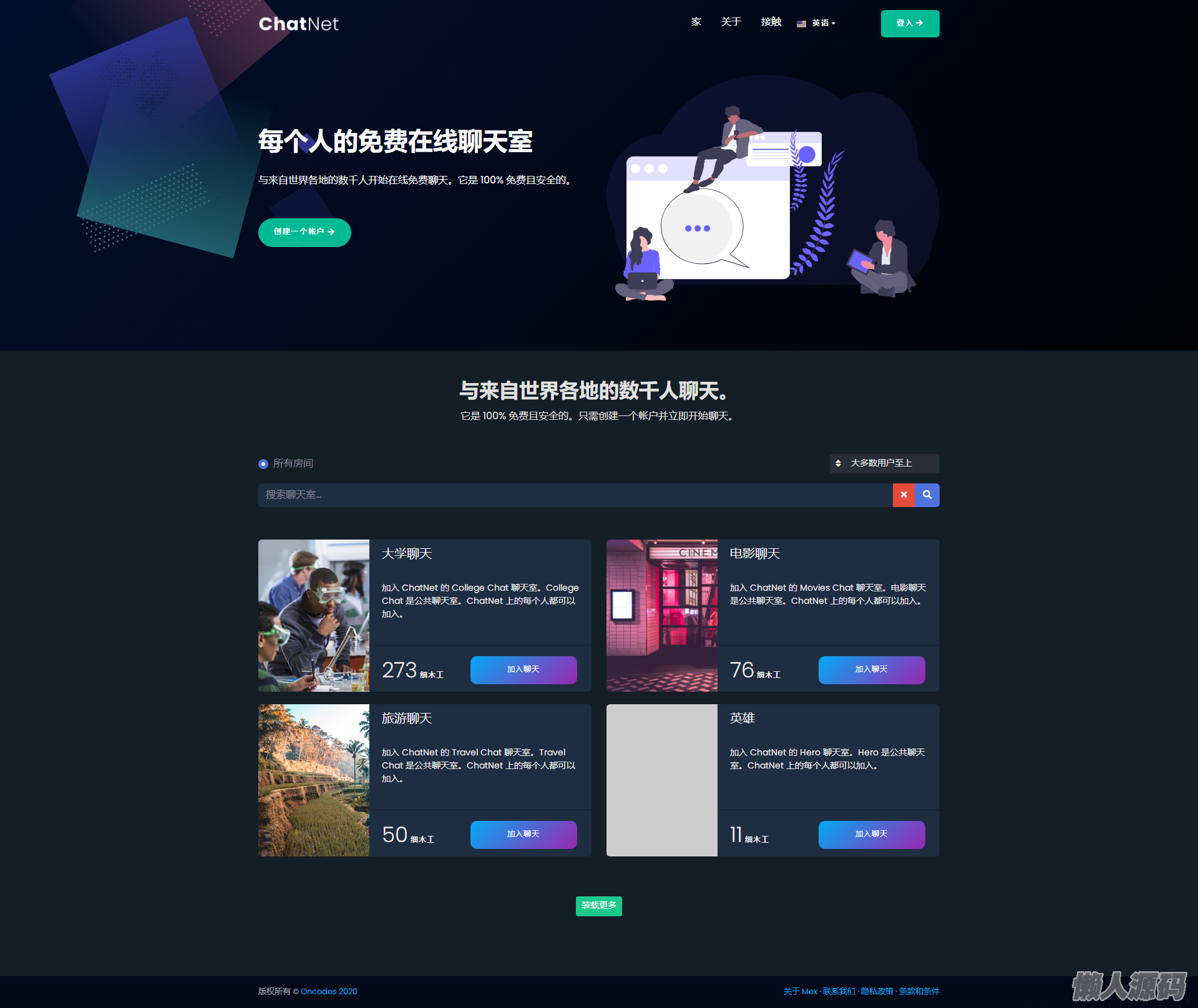 外一款多用户室源码,程序支持同时创建多个室,全站响应式适应pc和移动设备,界面的设计现代且用户友好,将使您的网站或应用无缝地成为功能丰富的社区和社交平台。程序内置英语,可翻译为多种语言。