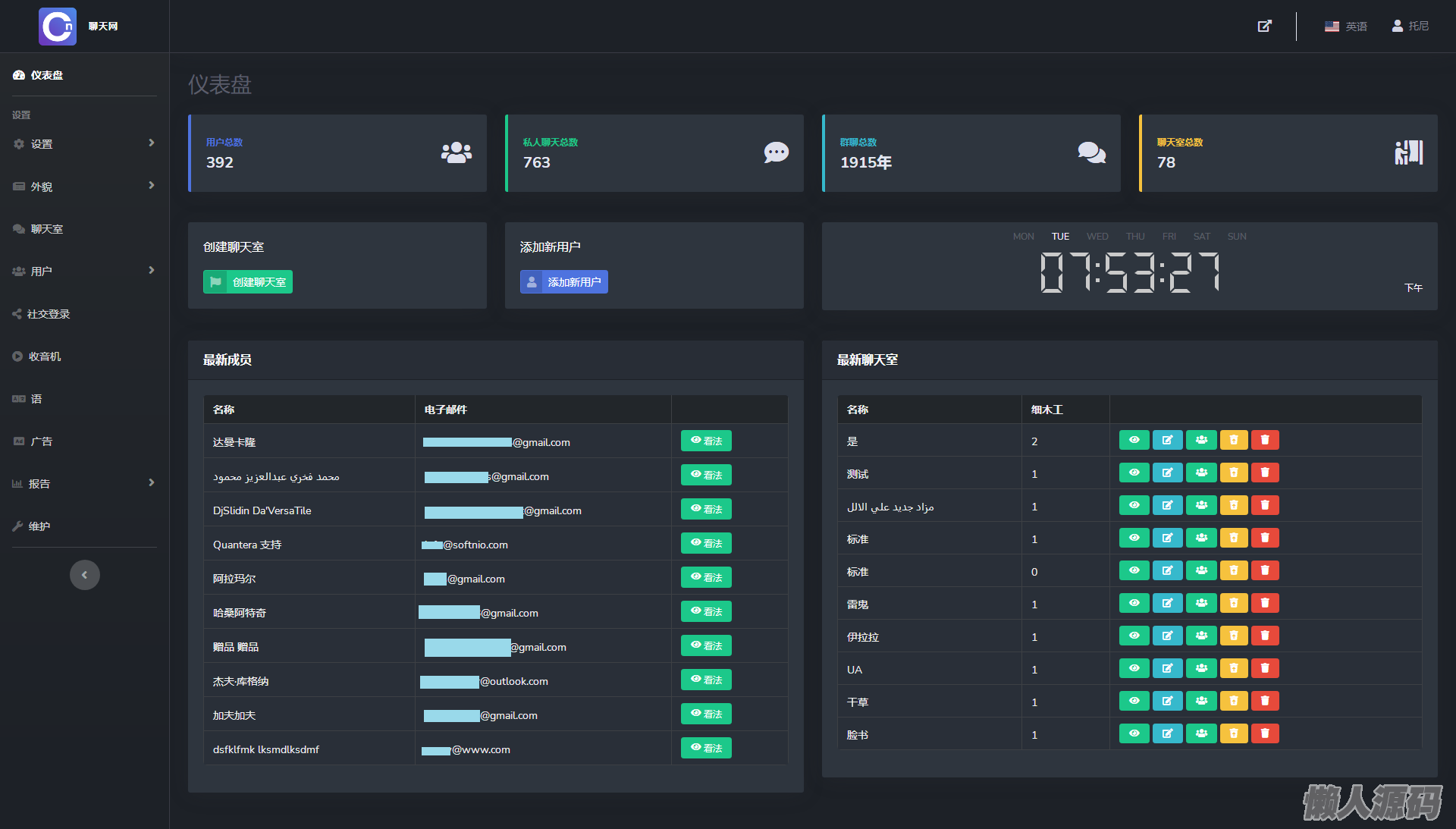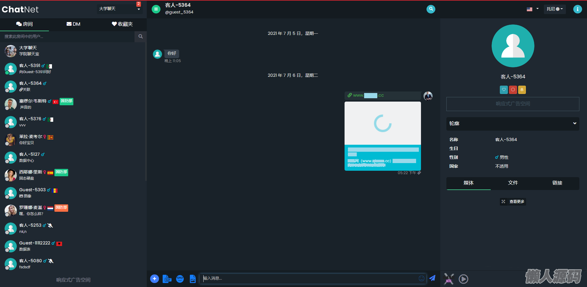 懒人源码 » 多人在线匿名聊天室/私人聊天室源码/支持同时创建多个聊天室