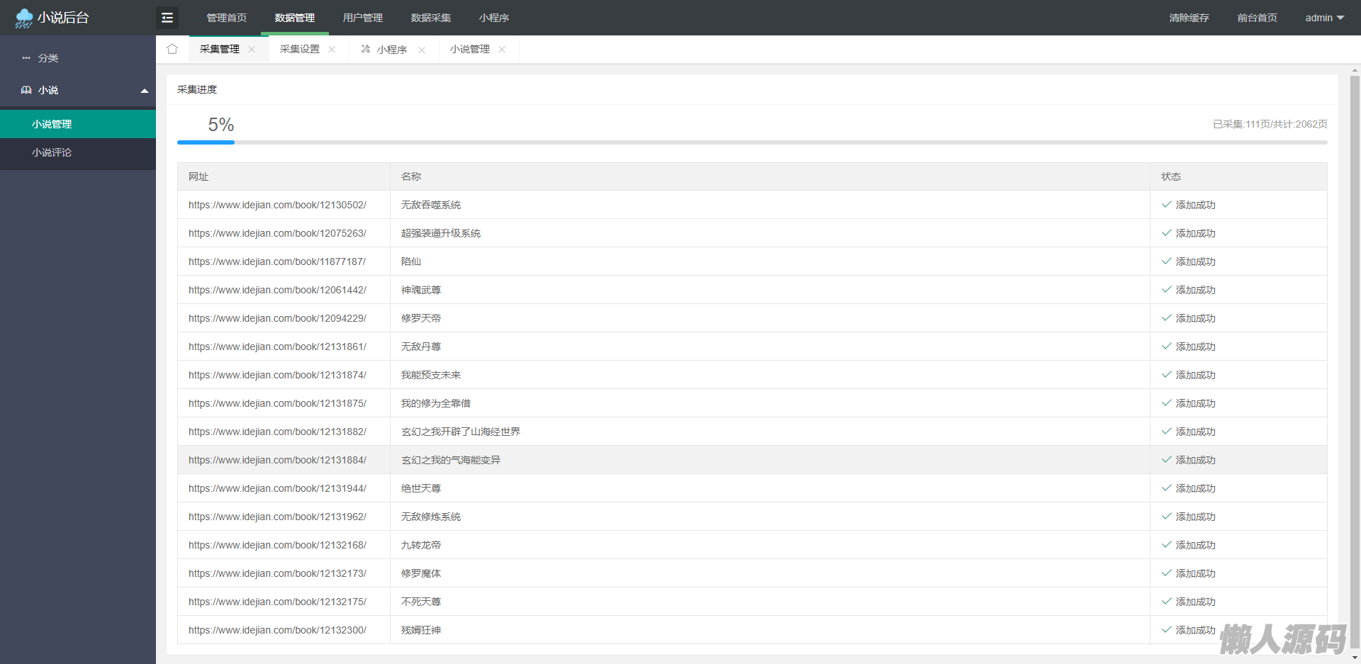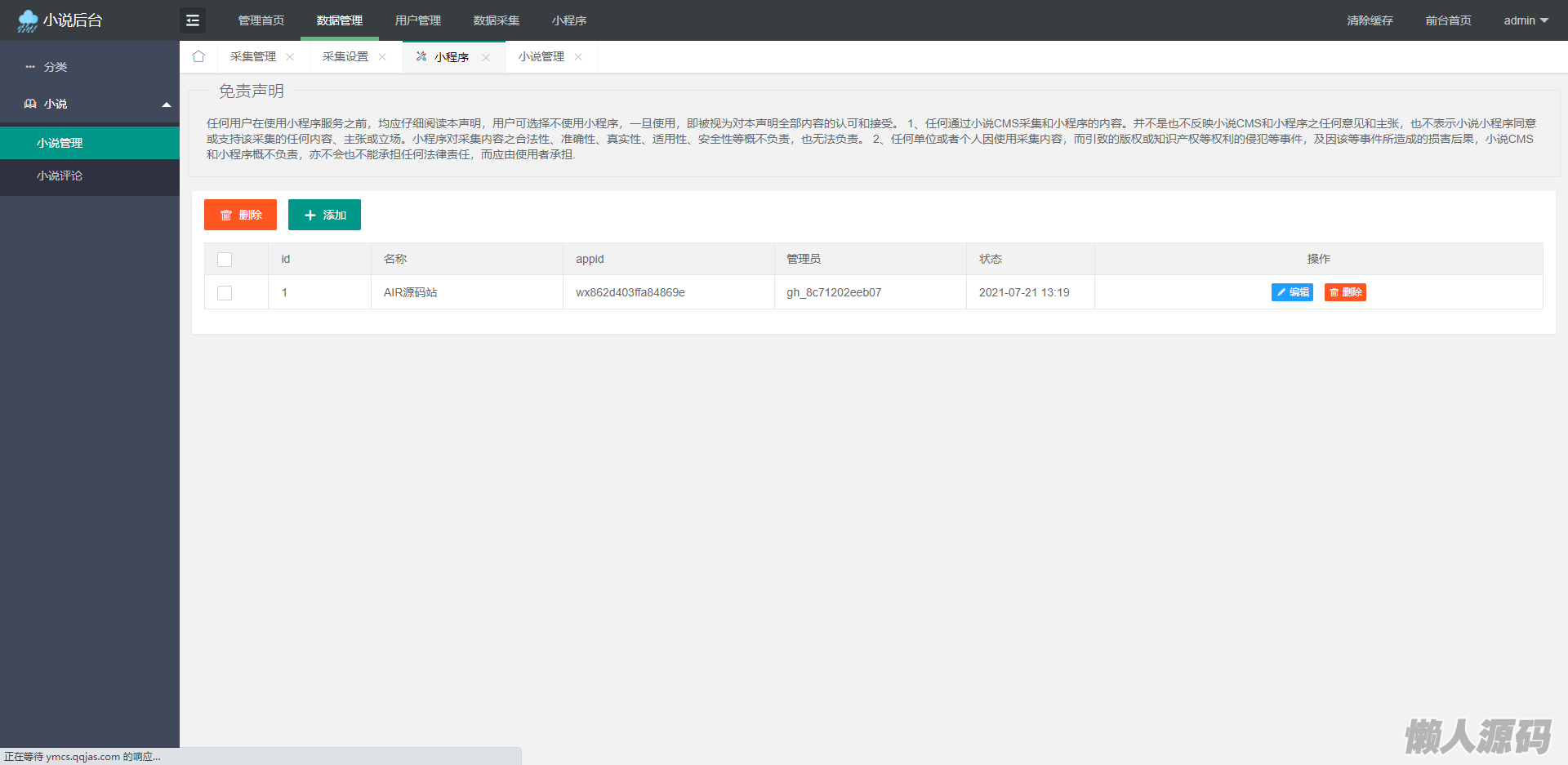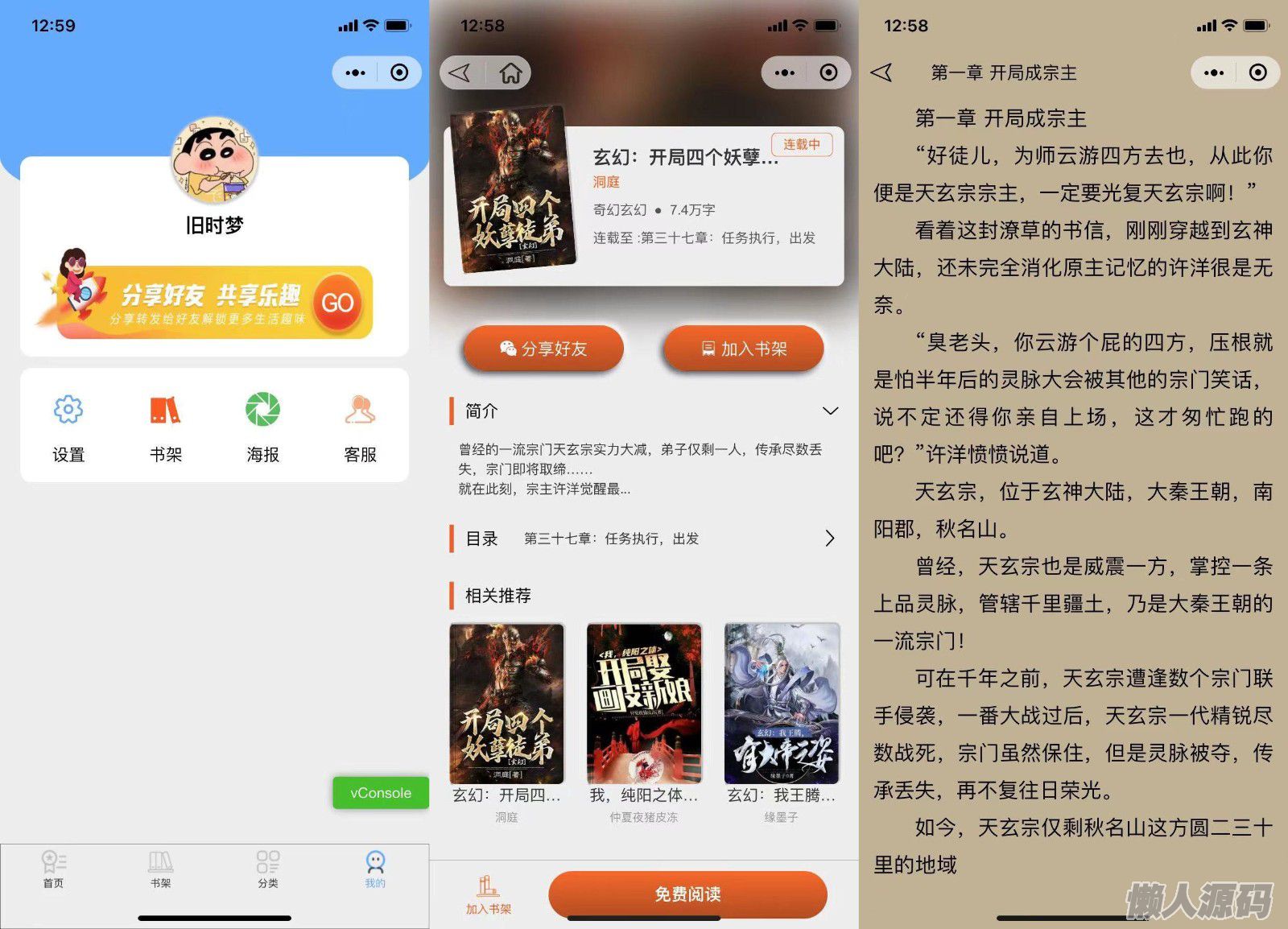懒人源码 » 超火的微信小说小程序源码-自带采集带安装教程
