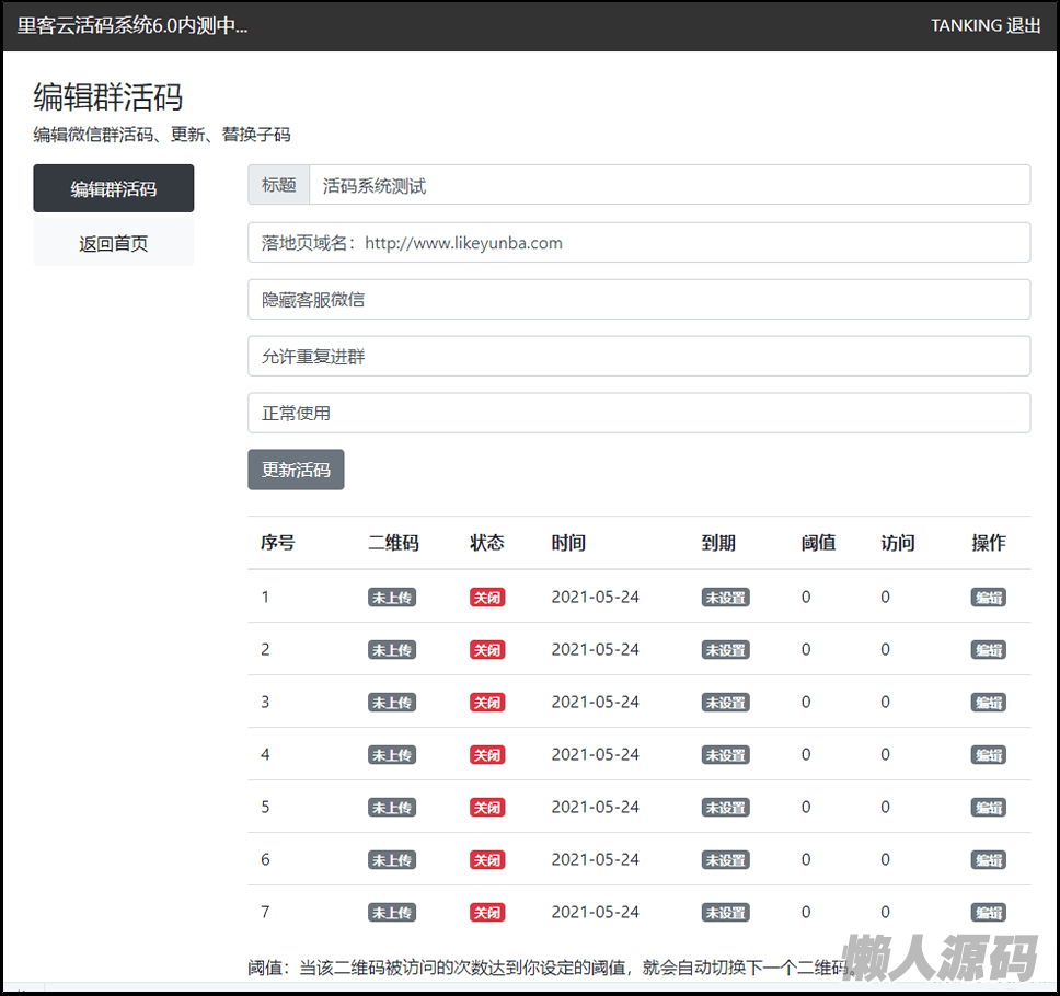 懒人源码 » 里客云微信活码管理系统源码V6.0开源版