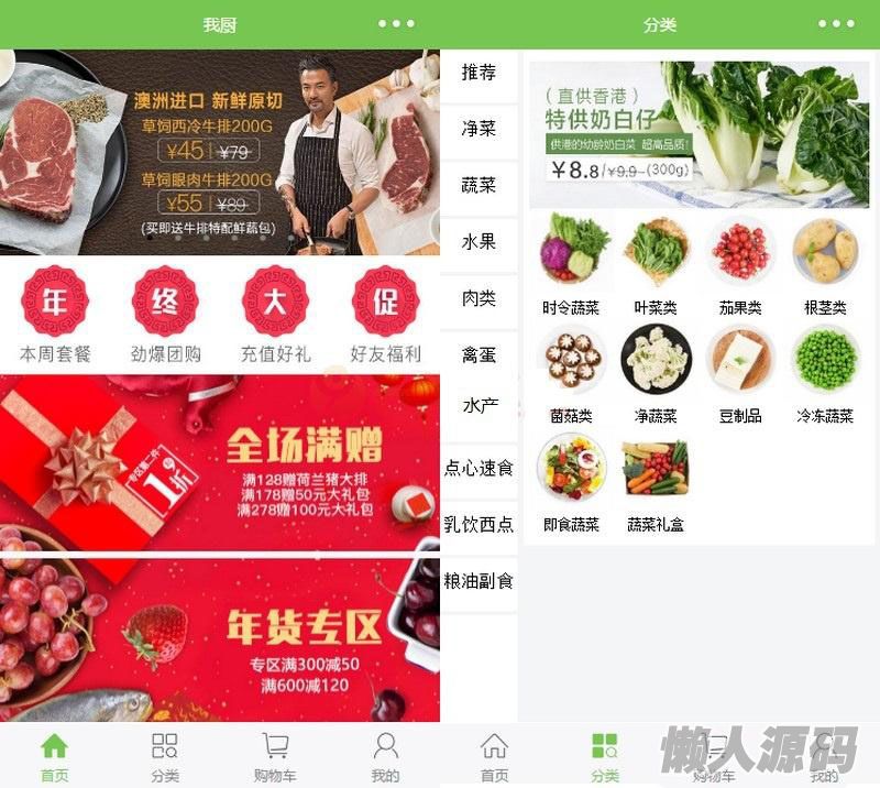 懒人源码 » 我厨蔬菜生鲜商城小程序源码