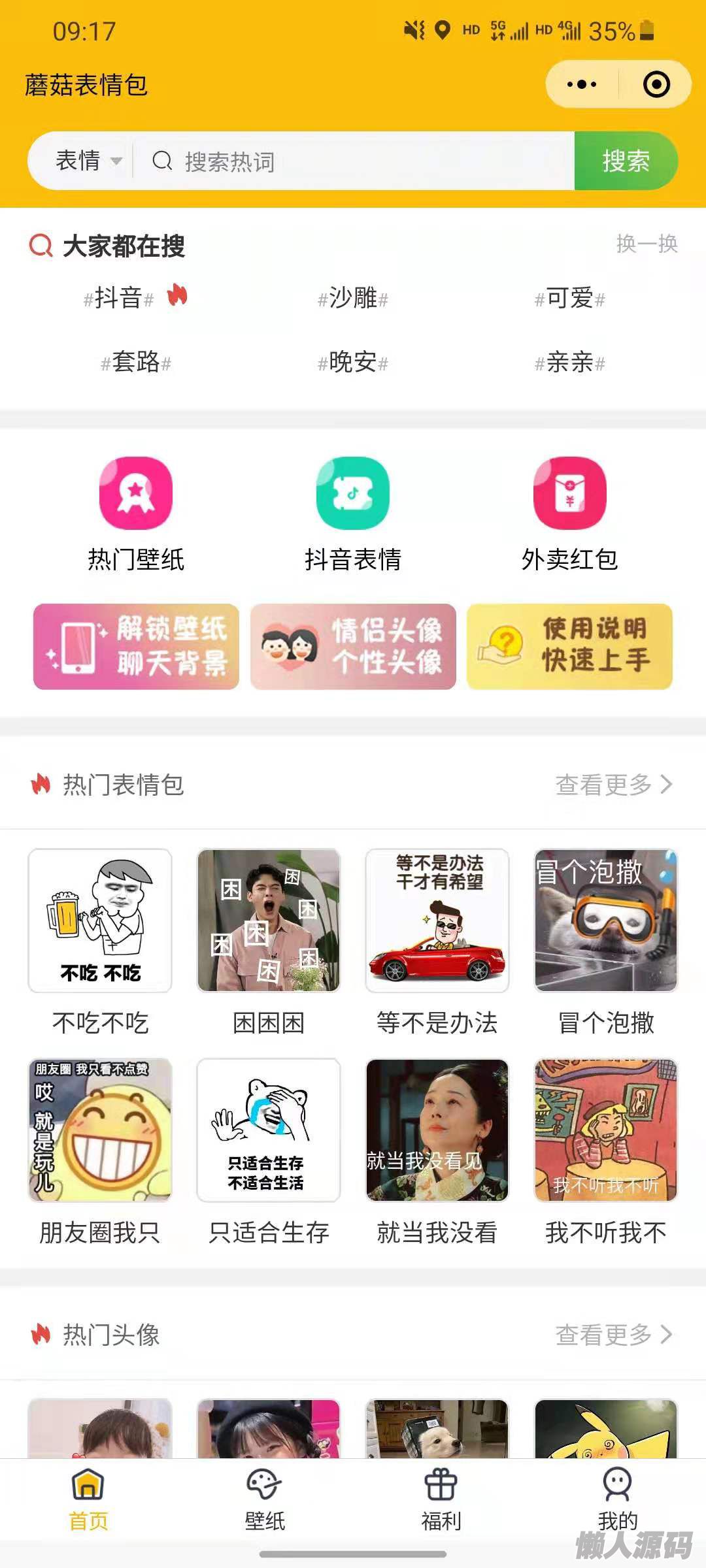 表情包+壁纸+外卖+头像+流量主+采集+后台上传表情包功能,启动,带后台