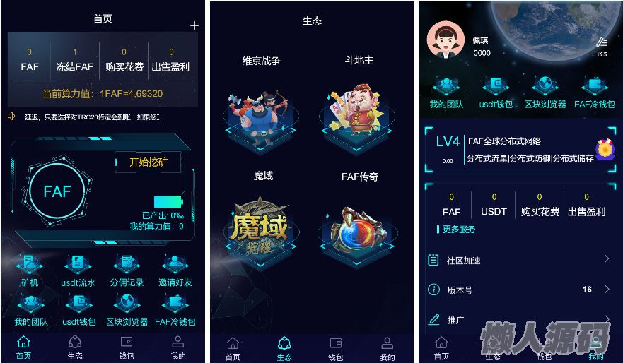 懒人源码 » FAF区块链手游 数字钱包 集成游戏、矿机、农场