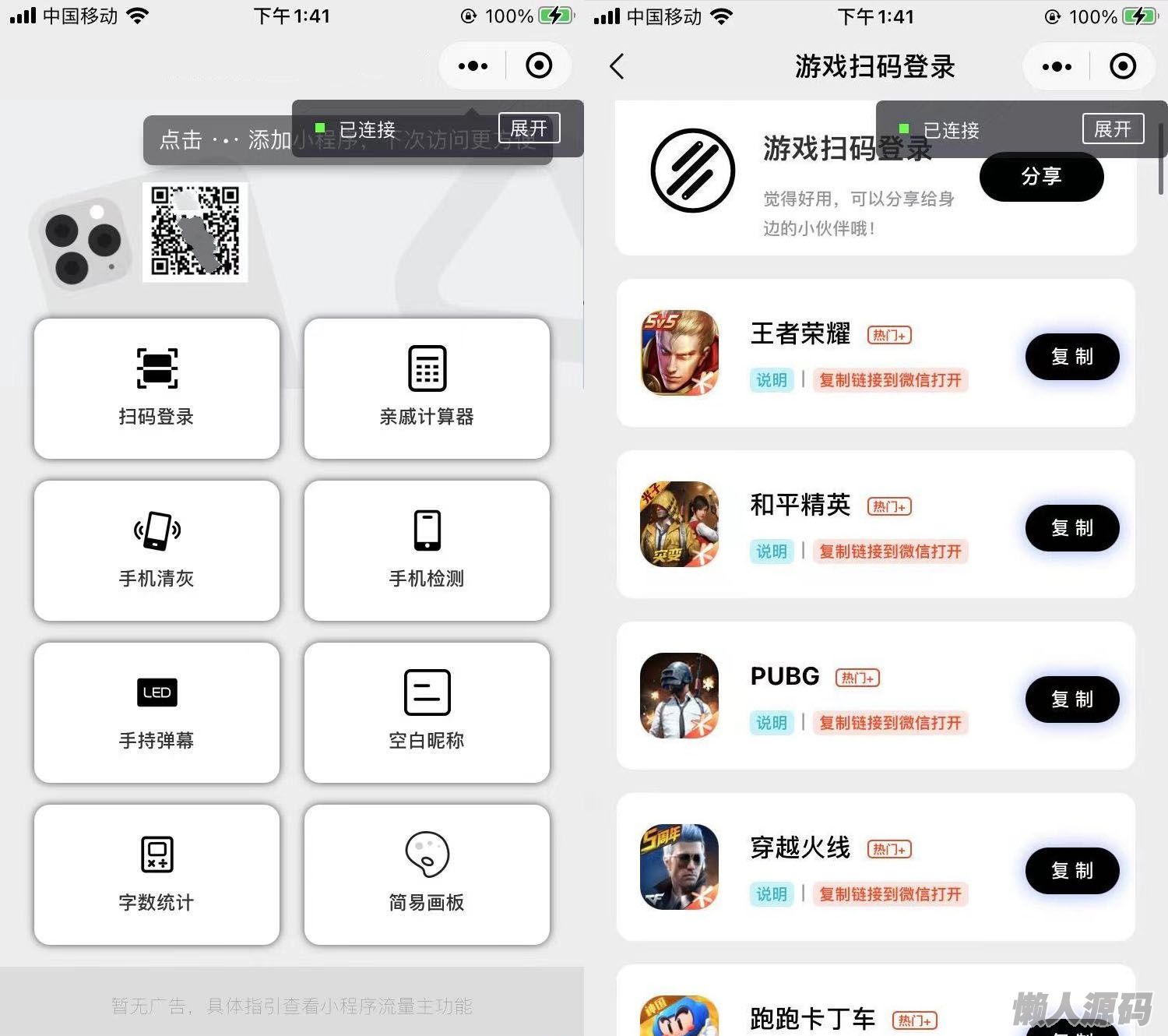 游戏扫码登录多功能工具箱集合微信小程序源码