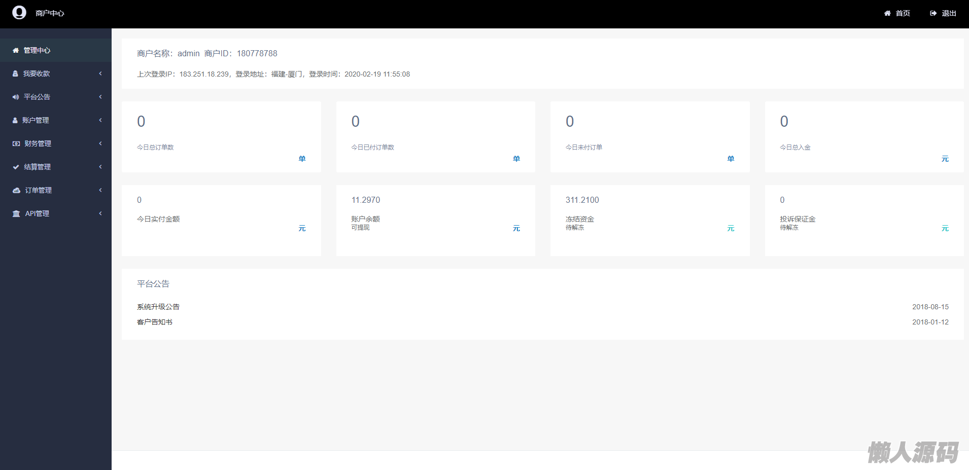 懒人源码 » 聚合支付系统/二开修复版本/三方支付系统/代付系统/完美上线运营版本
