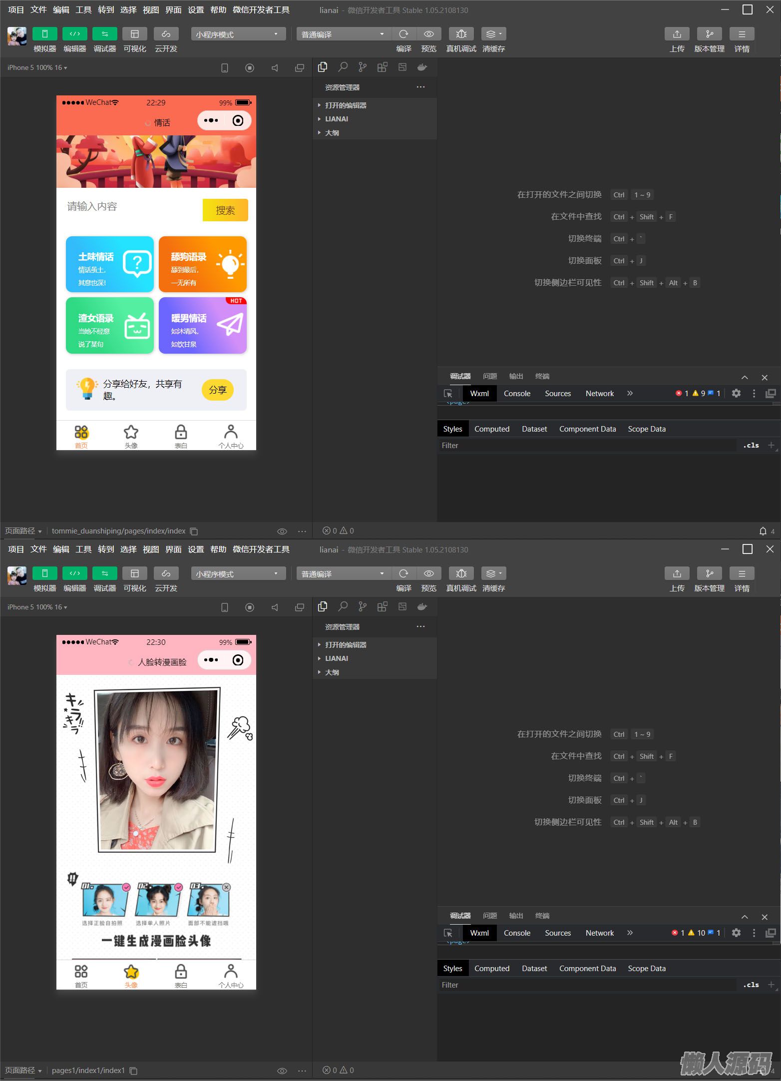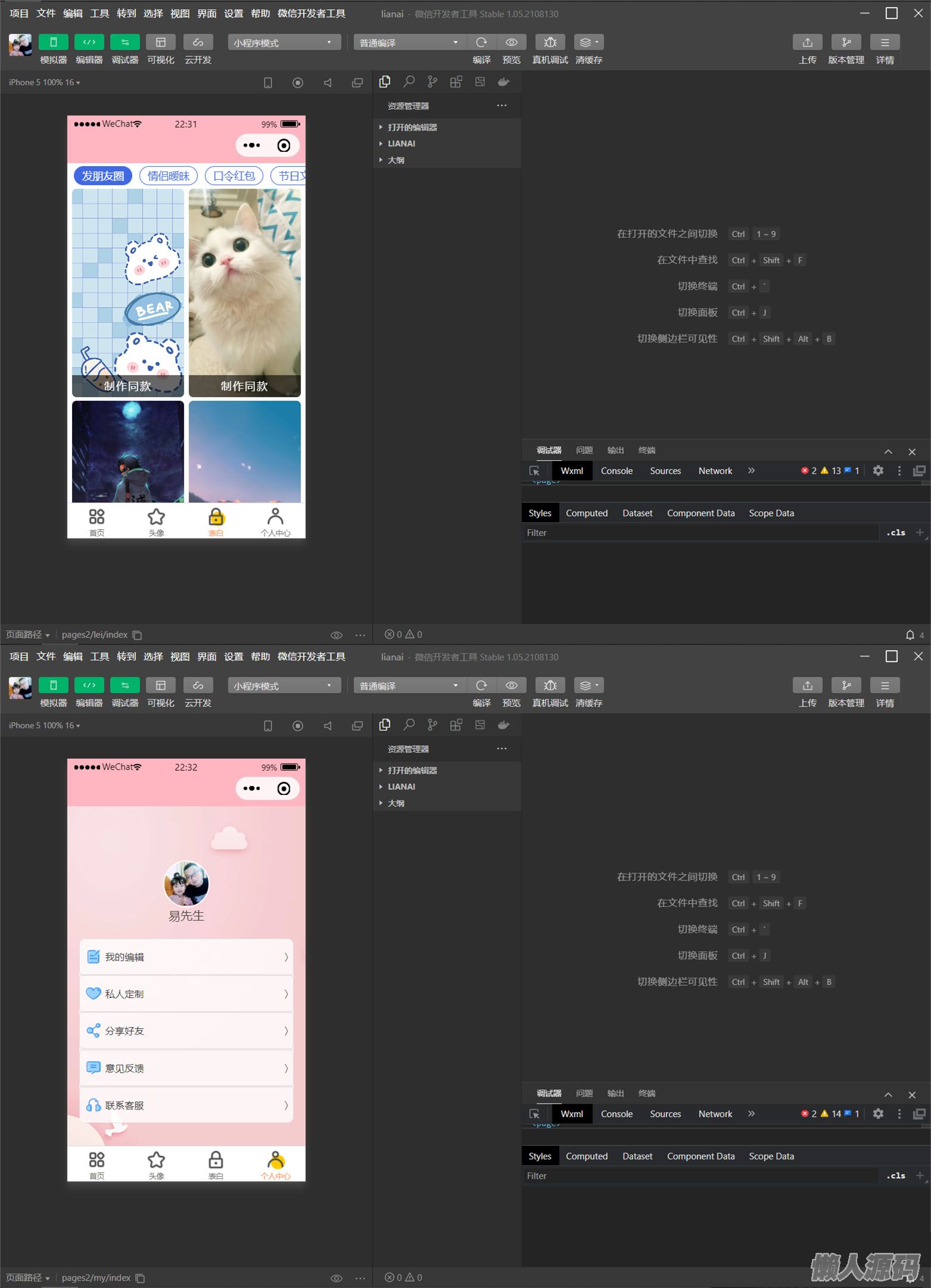 懒人源码 » 恋爱小助手微信QQ双端小程序源码